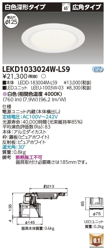 [法人限定] LEKD1033024WW-LS9 東芝 ※受注品 ダウンライト 1000 ユニット交換形 深形 温白色 Φ125 [ LEKD1033024WWLS9 ]