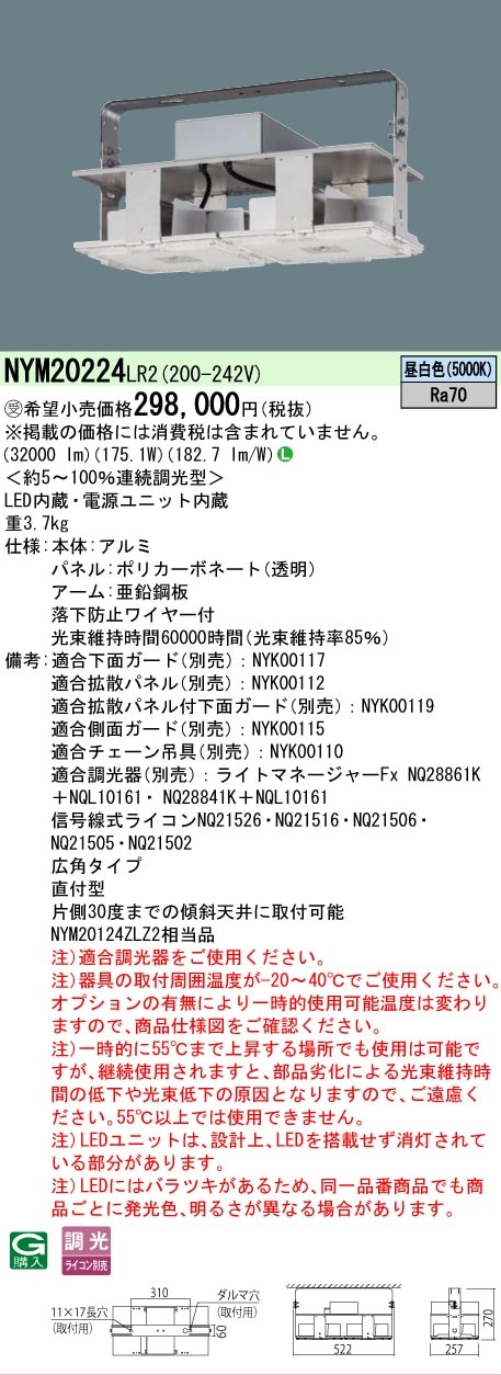 [法人限定][取寄品] NYM20224 LR2 パナソニック ※受注品 高天井用照明器具 昼白色 広角タイプ 連続調光型調光タイプ ライコン別売 [ NYM20224LR2 ]