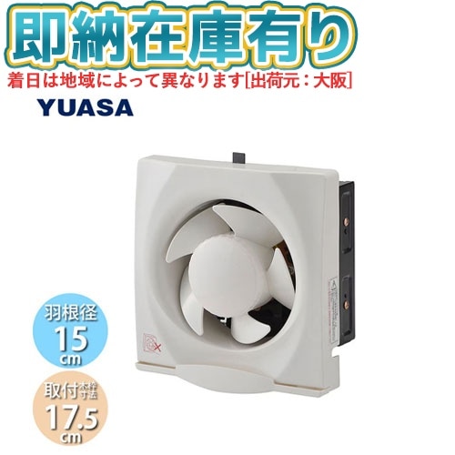 ○[法人限定][即納在庫有り] YNK-15 ユアサプライムス YUASA 一般換気扇 羽根径15cm 引き紐スイッチ連動式シャッター 埋め込み木枠サイズ 17.5cm 家庭用 [ YNK15 ]