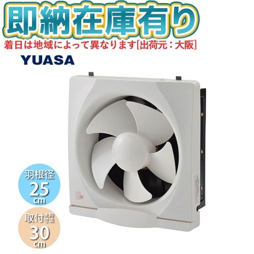 ○[法人限定][即納在庫有り] YNK-25 ユアサプライムス YUASA 一般換気扇 羽根径25cm 引き紐スイッチ連動式シャッター 埋め込み木枠サイズ 30cm 家庭用 [ YNK25 ]