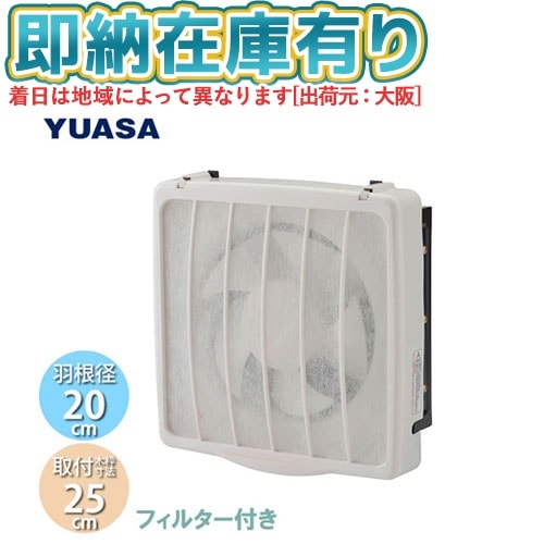 ○[法人限定][即納在庫有り] YNK-20 ユアサプライムス YUASA 一般換気扇 羽根径20cm 引き紐スイッチ連動式シャッター 埋め込み木枠サイズ 25cm 家庭用 [ YNK20 ]