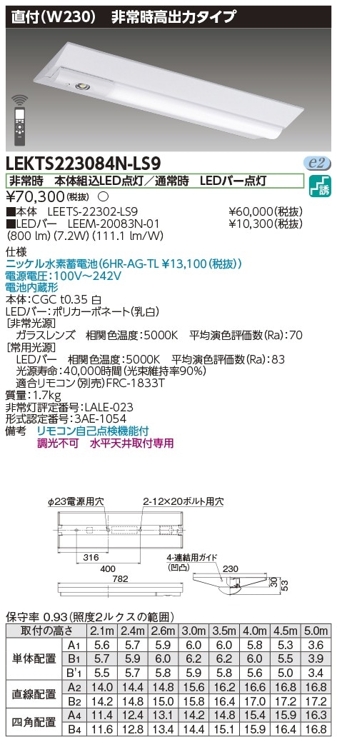 [法人限定][即納在庫有り] LEKTS223084N-LS9 [ LEKTS223084NLS9 ] 東芝 TENQOOシリーズ 直付型 W230 昼白色 非調光