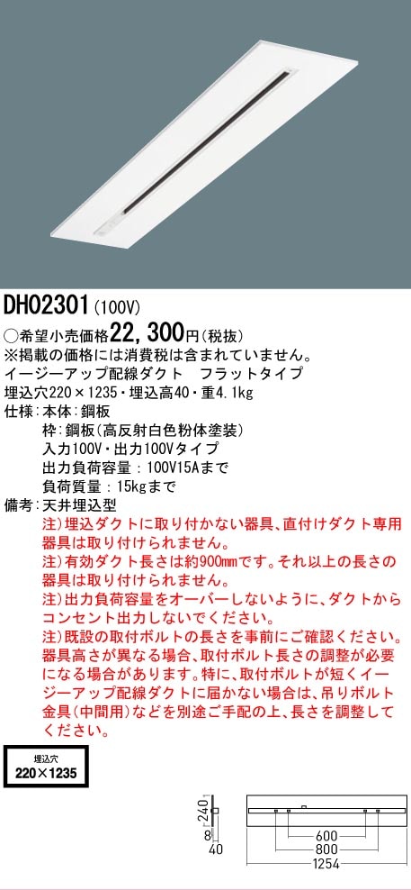 [法人限定][取寄品] DH02301 パナソニック 天井埋込型 イージーアップ配線ダクト フラットタイプ イージーアップ