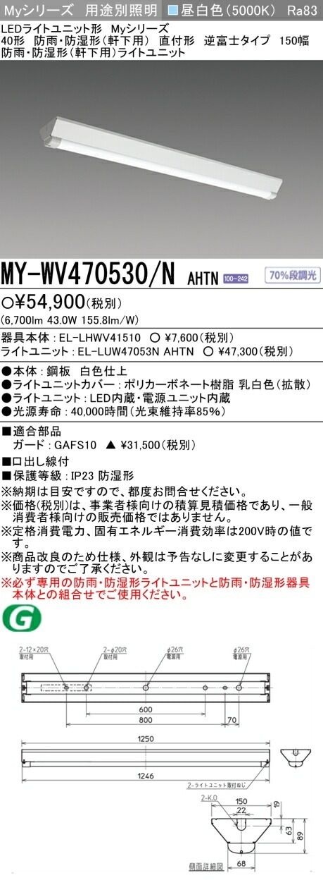 ▲[法人限定][即納在庫有り] MY-WV470530/N AHTN 三菱 40形 MYシリーズ 防雨・防湿形 軒下用 6900lm 昼白色 [ MYWV470530NAHTN ]