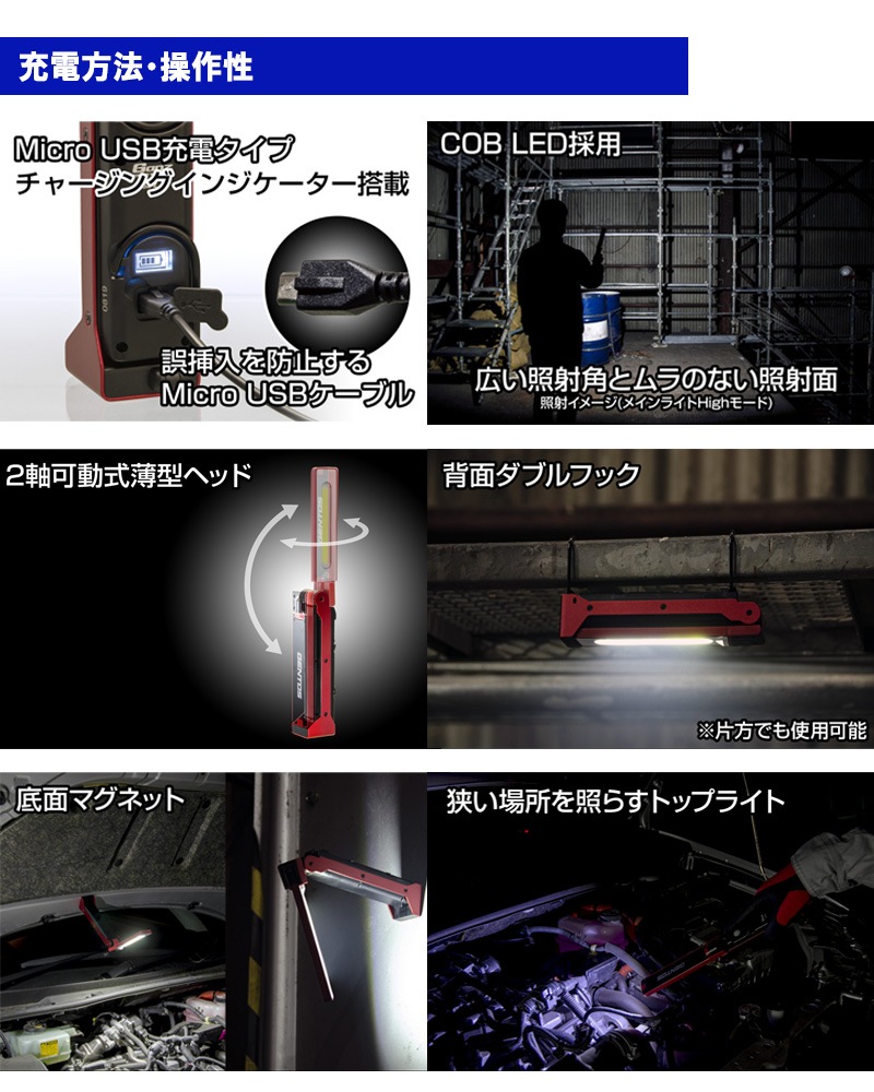 ●[即納在庫有り] GZ-223 GENTOS ジェントス Ganz ガンツ 薄型ヘッド作業灯シリーズ 車載 ハンディライト LEDライト 懐中電灯 ミニ懐中電灯 小型 防災 USB充電式 旧型番:GZ-213 [ GZ223 ]