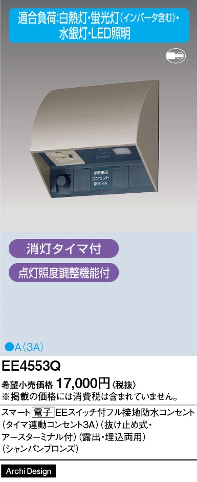 [法人限定][取寄品] EE4553Q シャンパンブロンズ パナソニック スマート 電子 EEスイッチ付フル接地防水コンセント タイマ連動コンセント3A 抜け止め式 アースターミナル付 露出 埋込両用 [ EE4553Q ]