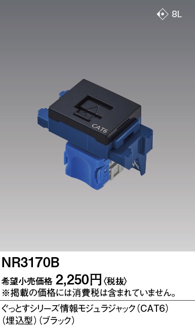[法人限定][取寄品] NR3170B ブラック パナソニック ぐっとすシリーズ情報モジュラジャック CAT6 埋込型 [ NR3170B ]
