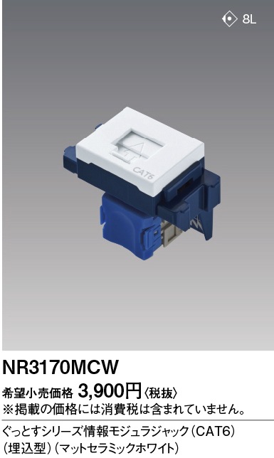 [法人限定][取寄品] NR3170MCW マットセラミックホワイト パナソニック ぐっとすシリーズ情報モジュラジャック CAT6 埋込型 [ NR3170MCW ]