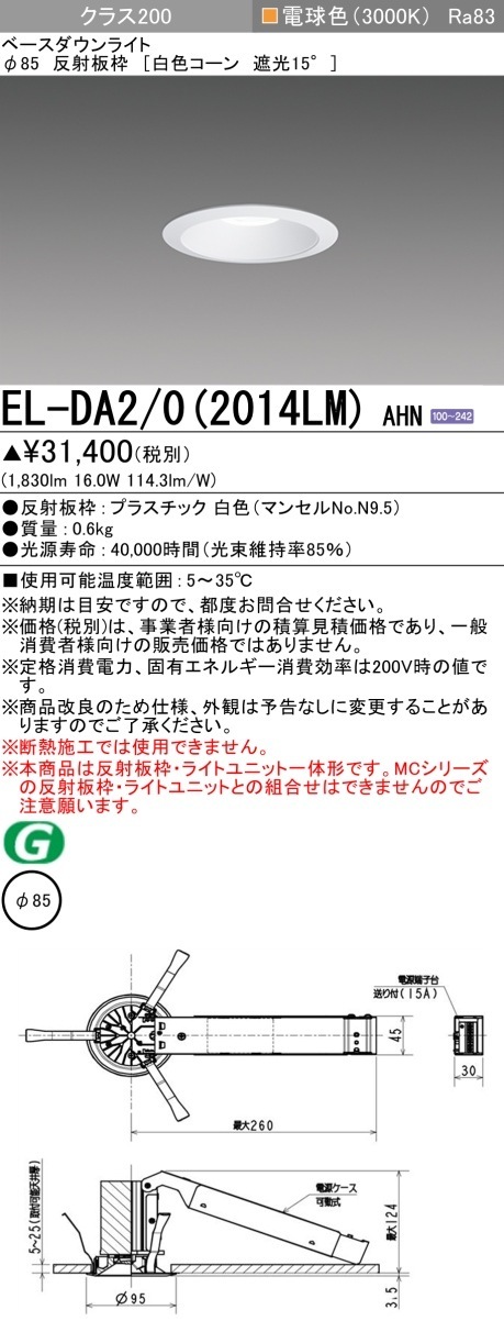 ▲納期未定[法人限定][取寄品] EL-DA2/0(2014LM) AHN 三菱 ※受注品 ダウンライト Φ85 電球色 [ ELDA202014LMAHN ]