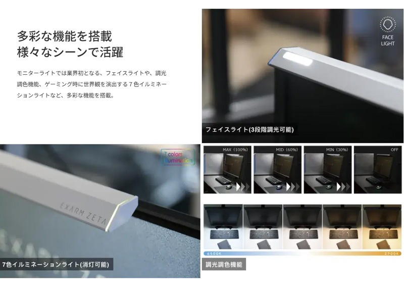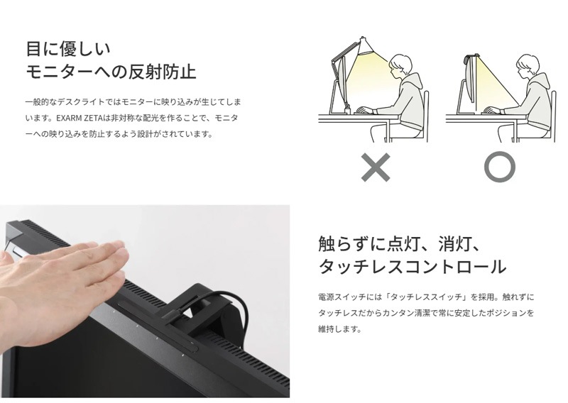 ○[即納在庫有り] EXZ-1500WH スワン電器 SWAN EXARM ZETA エグザームゼータ ホワイト モニターライト ゲーミングライト PCライト デスクトップライト スクリーンライト LED 日本製 調光 調色 タッチレス [ EXZ1500WH ]