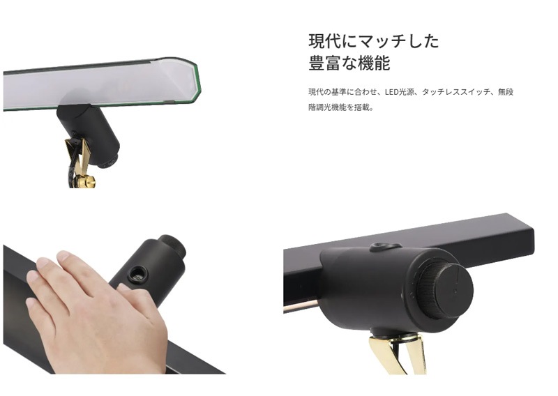 現代の基準に合わせ、LED光源、タッチレススイッチ、無段階調光機能を搭載。