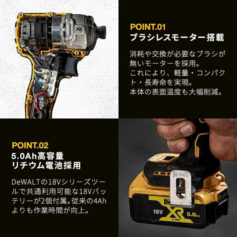 ○[即納在庫有り] DCF850P2T-JP デウォルト DEWALT 18V XR Li-Ion ブラシレス・インパクトドライバー バッテリー2個 充電器 収納ケース セット [ DCF850P2TJP ]