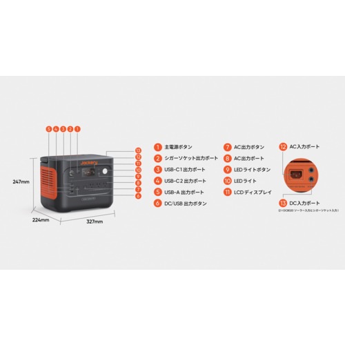 ・「ポータブル電源 900」は容量960Wh/定格出力1500Wです。