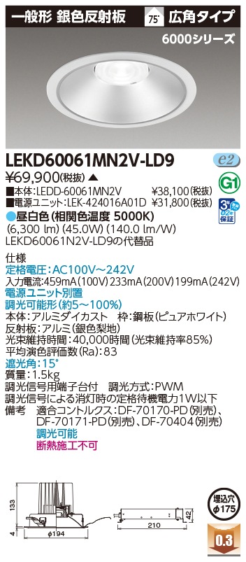 [法人限定][取寄品] LEKD60061MN2V-LD9 東芝 ※受注品 一体形ダウンライト 6000一般形銀色Φ175 [ LEKD60061MN2VLD9 ]