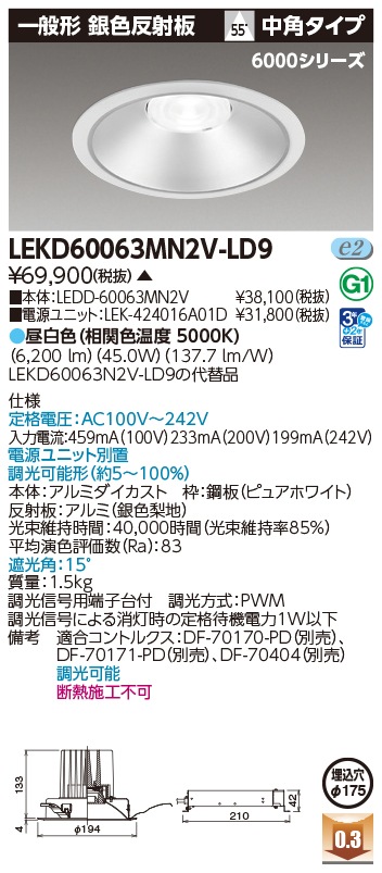 [法人限定][取寄品] LEKD60063MN2V-LD9 東芝 ※受注品 一体形ダウンライト 6000一般形銀色Φ175 [ LEKD60063MN2VLD9 ]