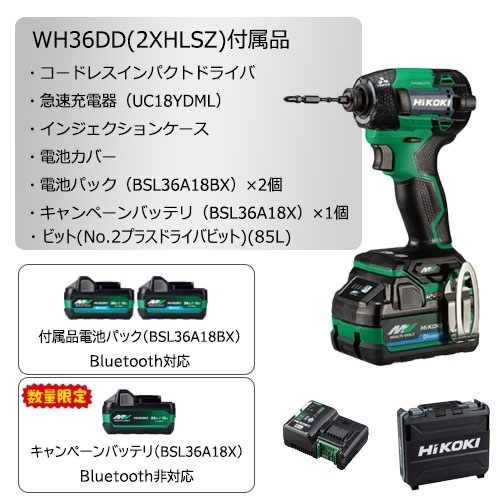 ○[即納在庫有り] WH36DD(2XHLSZ) HiKOKI コードレスインパクトドライバ WH36DD形 アグレッシブグリーン バッテリー(BSL36A18X)1個追加キャンペーン [ WH36DD2XHLSZ ]
