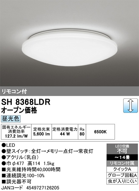 ○[即納在庫有り] SH8368LDR オーデリック LEDシーリングライト 調光(昼光色)14畳 [ SH8368LDR ]