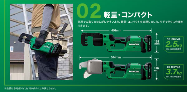 狭所での取りまわしがしやすいよう、軽量・コンパクトを実現しました。片手でラクに作業ができます。