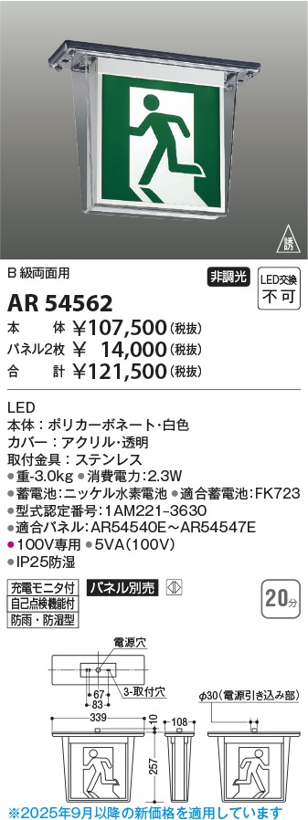 [法人限定][取寄品] AR54562 コイズミ KOIZUMI 誘導灯 防雨・防湿型 LED交換不可 [ AR54562 ]