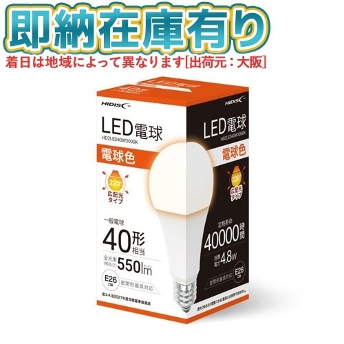 ○[即納在庫有り] HD2LED40W3000K 磁気研究所 HIDISC LED電球 一般電球40形相当 E26口金 電球色 [ HD2LED40W3000K ]