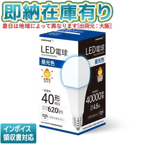 ○[即納在庫有り] HD2LED40W6500K 磁気研究所 HIDISC LED電球 一般電球40形相当 E26口金 昼光色 [ HD2LED40W6500K ]