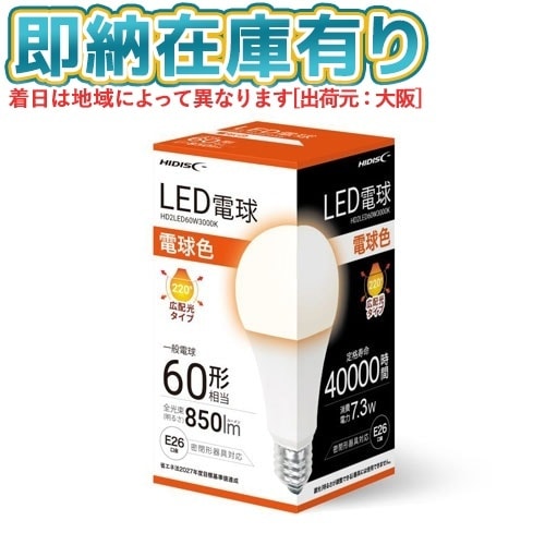 ○[即納在庫有り] HD2LED60W3000K 磁気研究所 HIDISC LED電球 一般電球60形相当 E26口金 電球色 [ HD2LED60W3000K ]