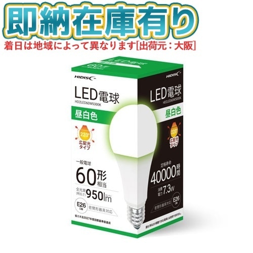 ○[即納在庫有り] HD2LED60W5000K 磁気研究所 HIDISC LED電球 一般電球60形相当 E26口金 昼白色 [ HD2LED60W5000K ]